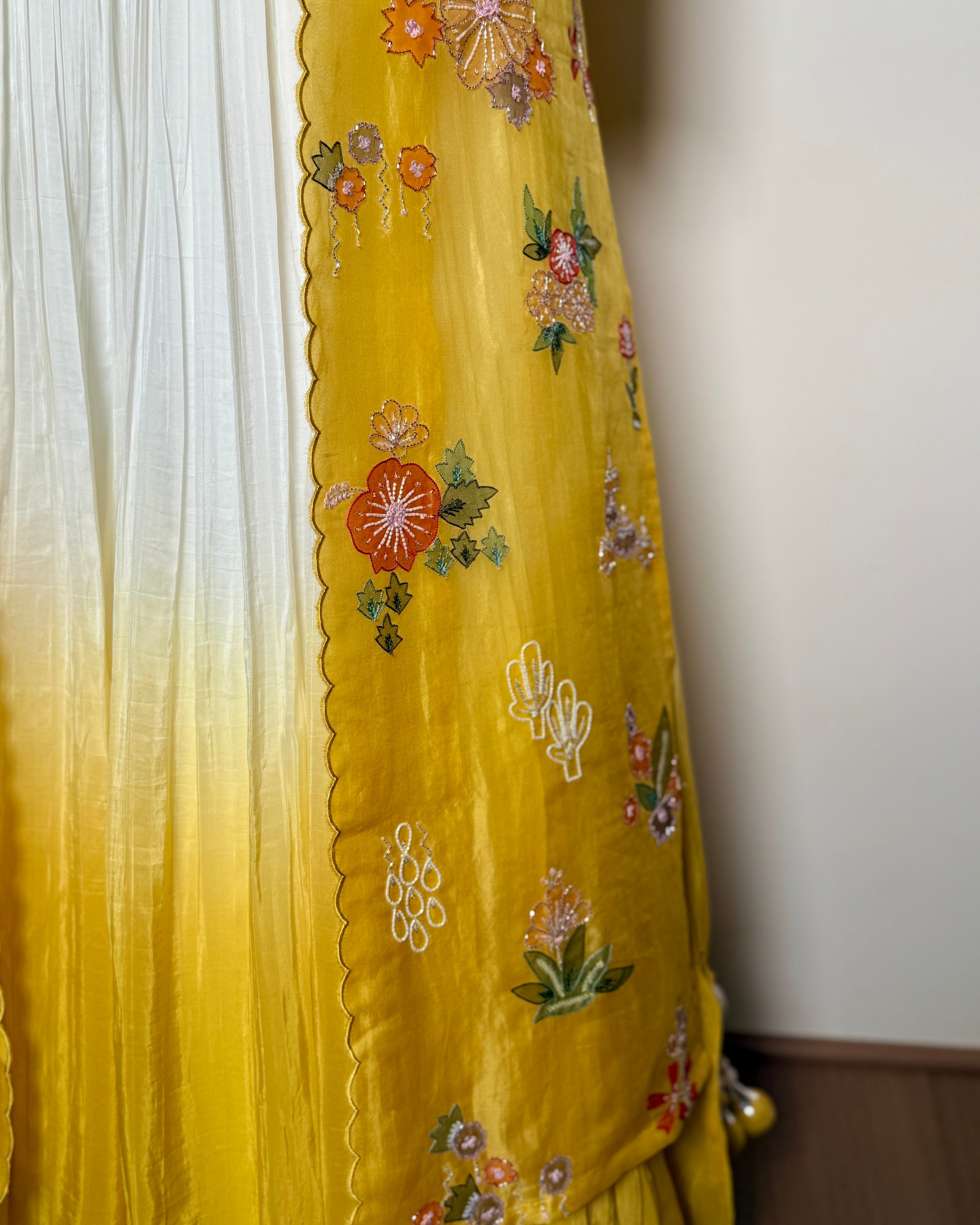 Butter Yellow Chiffon Silk Appliqué, Sequin & Spring Embroidered Lehenga – Un Ghagra 3 U