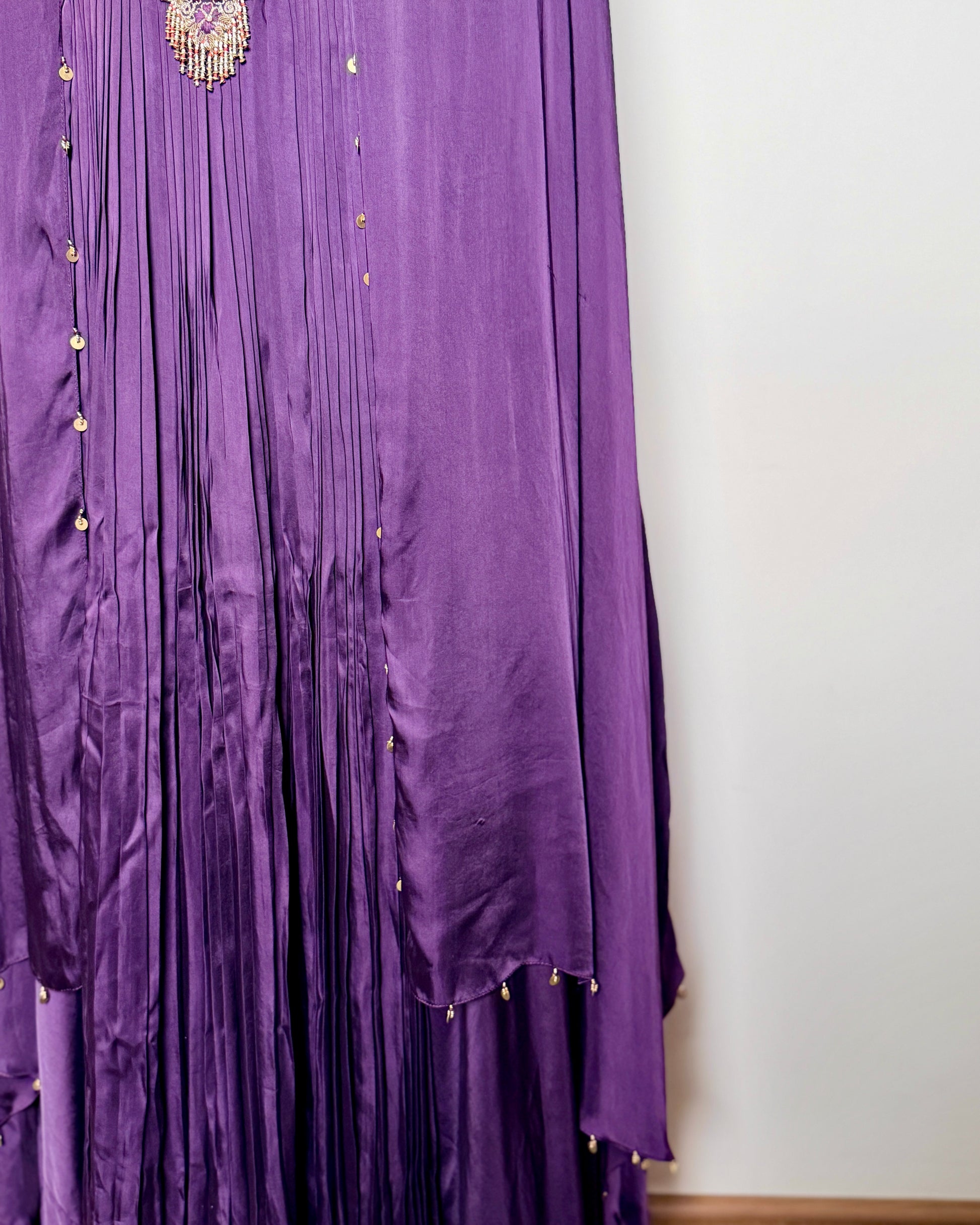 Purple Pure Satin Silk Zardosi, Moti & Aari Embroidered Gown – Suit 2 U