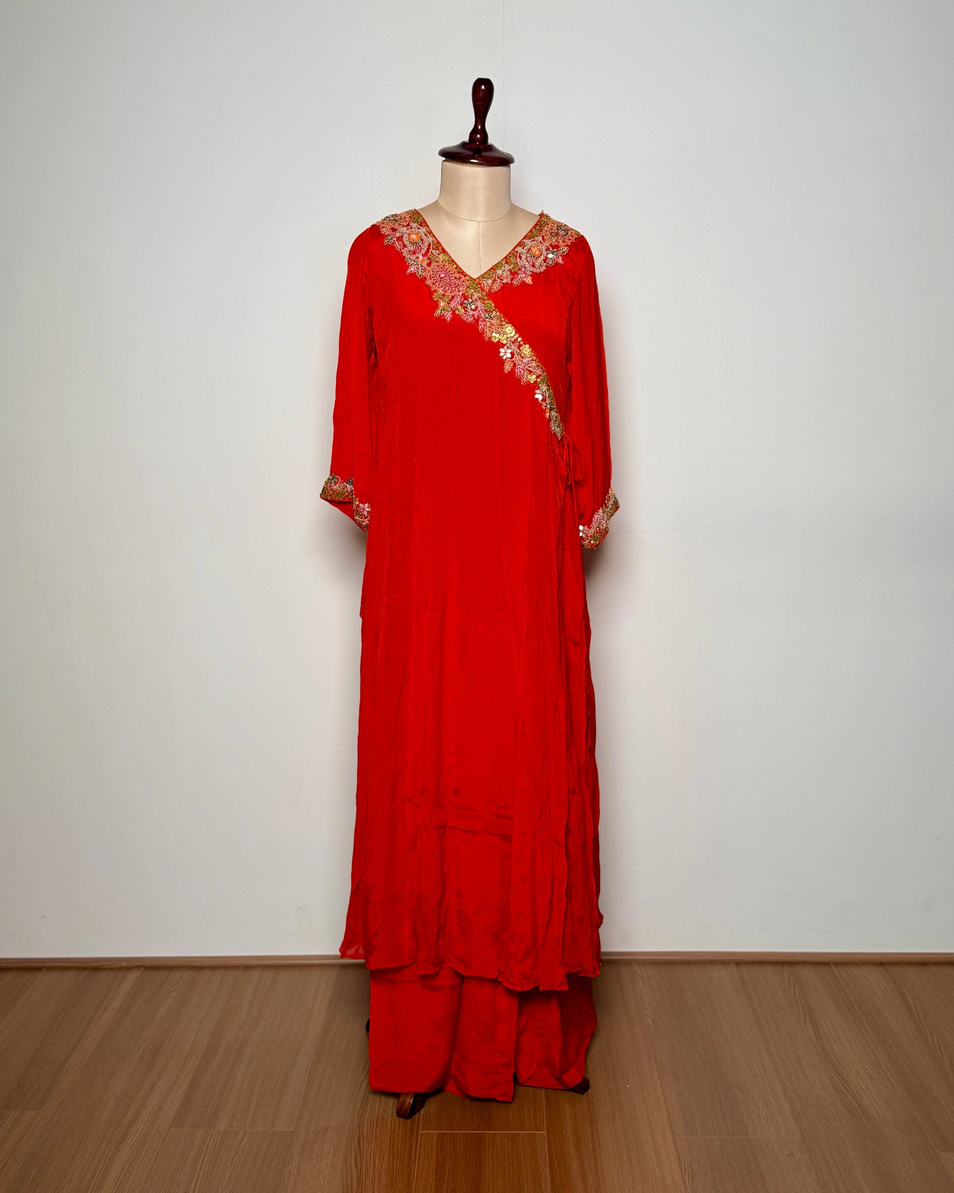 Red Georgette Silk Gotta Patti, Aari & Sequin Embroidered Indo-Western – TF-P-757 L