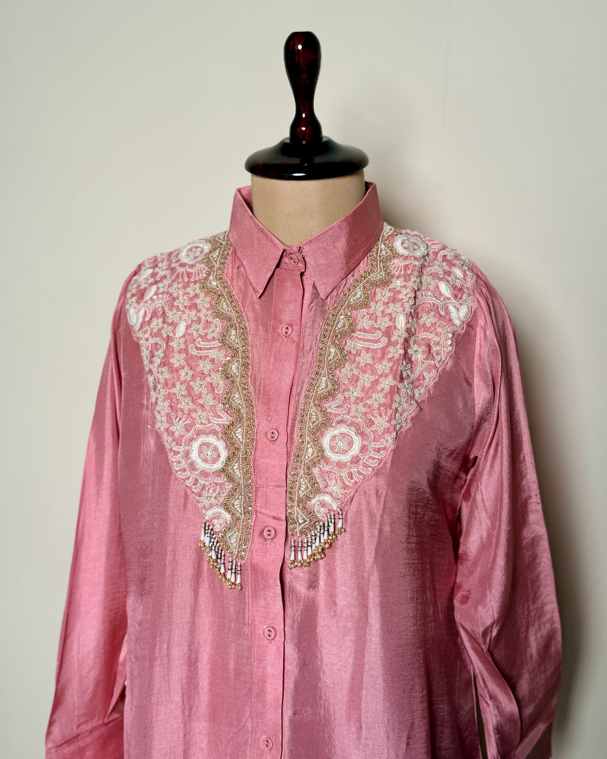 Soft Pink Satin Silk Gotta, Moti & Sequin Embroidered Indo-Western – SUIT / S-394 / ONION R